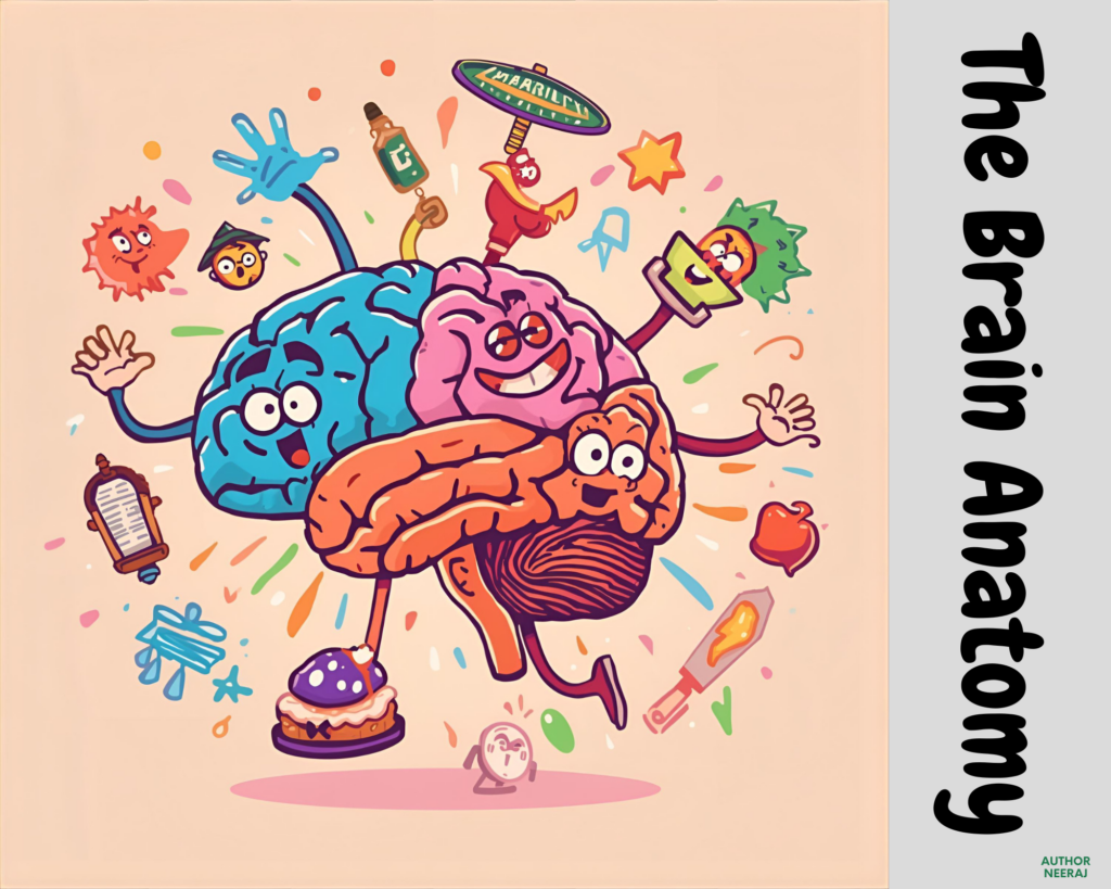 I have wondered through various ideas on how to start this project. The process began by identifying the key brain structures most important for beginners, including the frontal lobe, temporal lobe, occipital lobe, parietal lobe, cerebellum, brainstem, hippocampus, and amygdala. These are the ones that I decided to go through with. I have explored various metaphors through which I can explain the anatomy in an easy-to-understand way, such as a brain cartoon character teaching a confused student about the functionality of different brain parts. Another metaphor that I tried was a workplace or office map where the manager would be the frontal lobe, the coach would be the cerebellum, and so on.